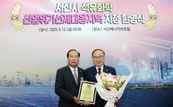 이번 감사패는 서산시 석유화학 산업위 위기 극복과 지역 경제 발전을 위해 산업위기 선제대응지역 지정 과정에서의 지도력과 노고를 인정받아 수여된 것이다.