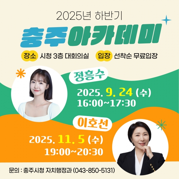 한편 올해 마지막 충주아카데미로 11월 5일 오후 7시, 시청 3층 대회의실에서 이호선 교수 초청 특강을 마련한다.