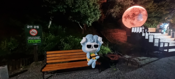 첫 번째는 달 조형물 앞에서 ‘두 손을 모아 간절히 소원을 비는 청양이’의 모습이다.