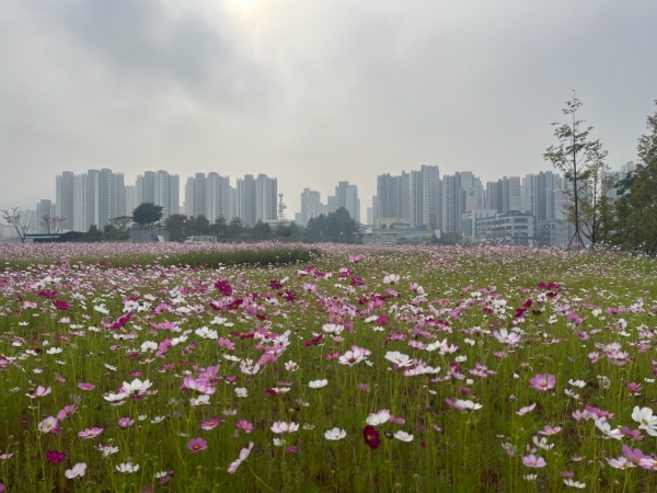 코스모스 단지의 화려한 꽃 장관은 추석 연휴와 더불어 오는 10월 24일 시민의숲 다목적 잔디광장에서 개최하는 시민의 숲 준공식 및 정원축제까지 약 3주간 감상할 수 있다.