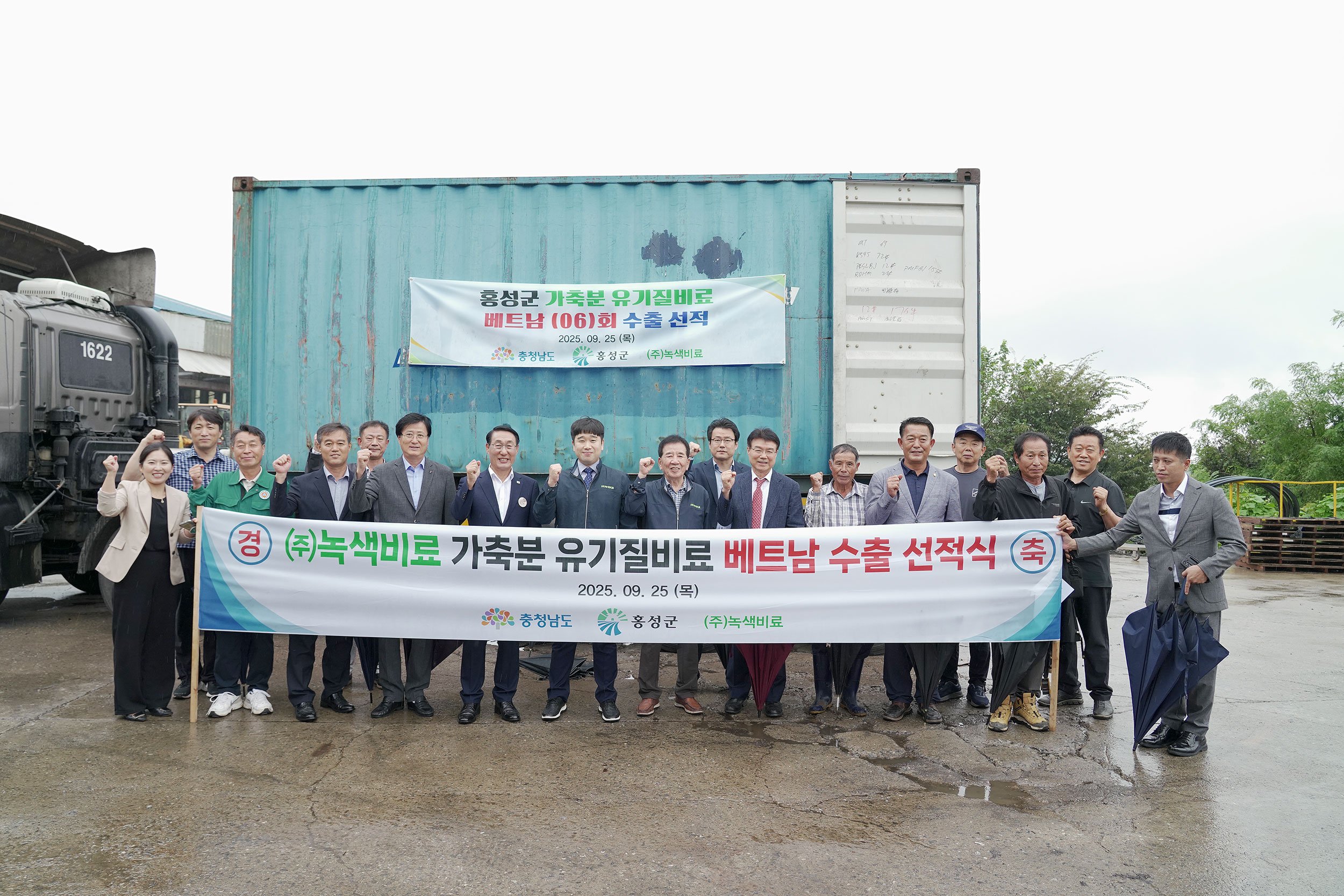 한편, 지난 9월 25일 광천읍 소재 ㈜녹색비료에서 베트남 수출 선적 기념행사가 열려 관계자들이 함께 성과를 축하했다.