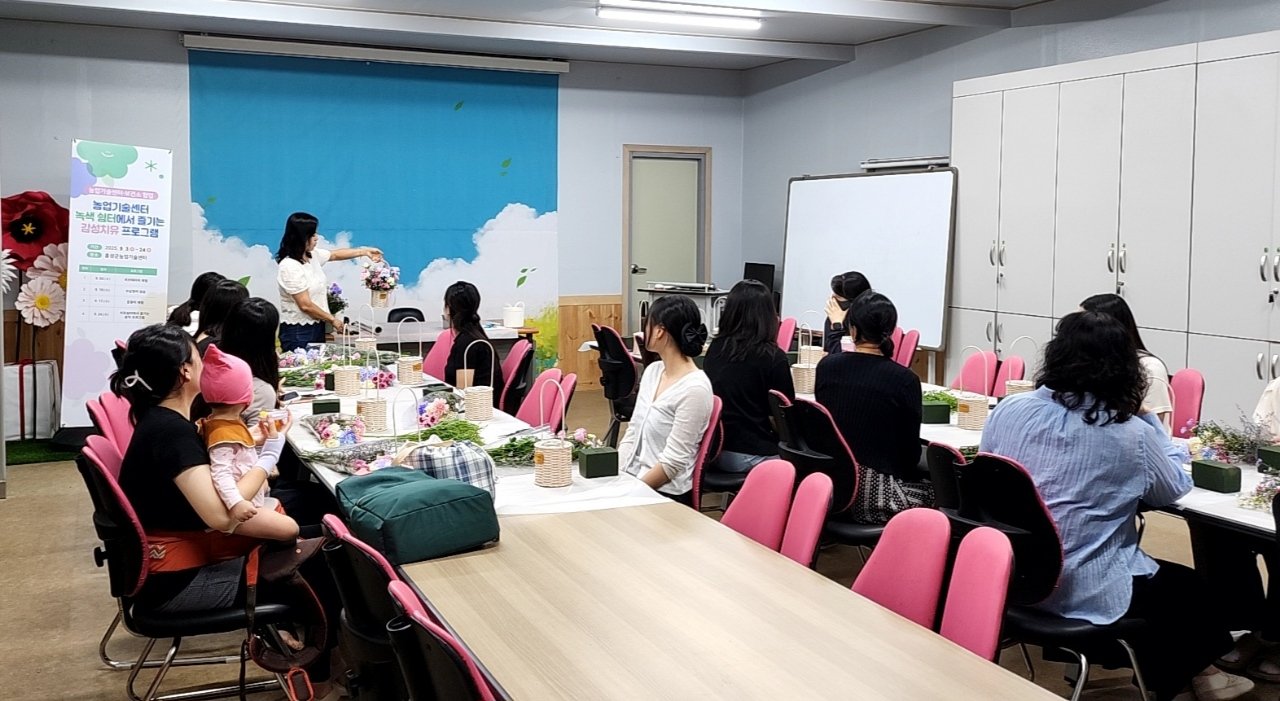 [충청뉴스큐] 홍성군농업기술센터가 보건소와 협력해 임산부와 난임부부를 대상으로 감성치유 프로그램을 운영한 결과 큰 호응을 얻었다. 이번 프로그램은 정서적 안정과 건강한 임신- 출산 환경을 돕기 위해 마련됐으며, 농업- 농촌 자원에 인문- 예술 요소를 접목한 체험형 방식으로 진행됐다.