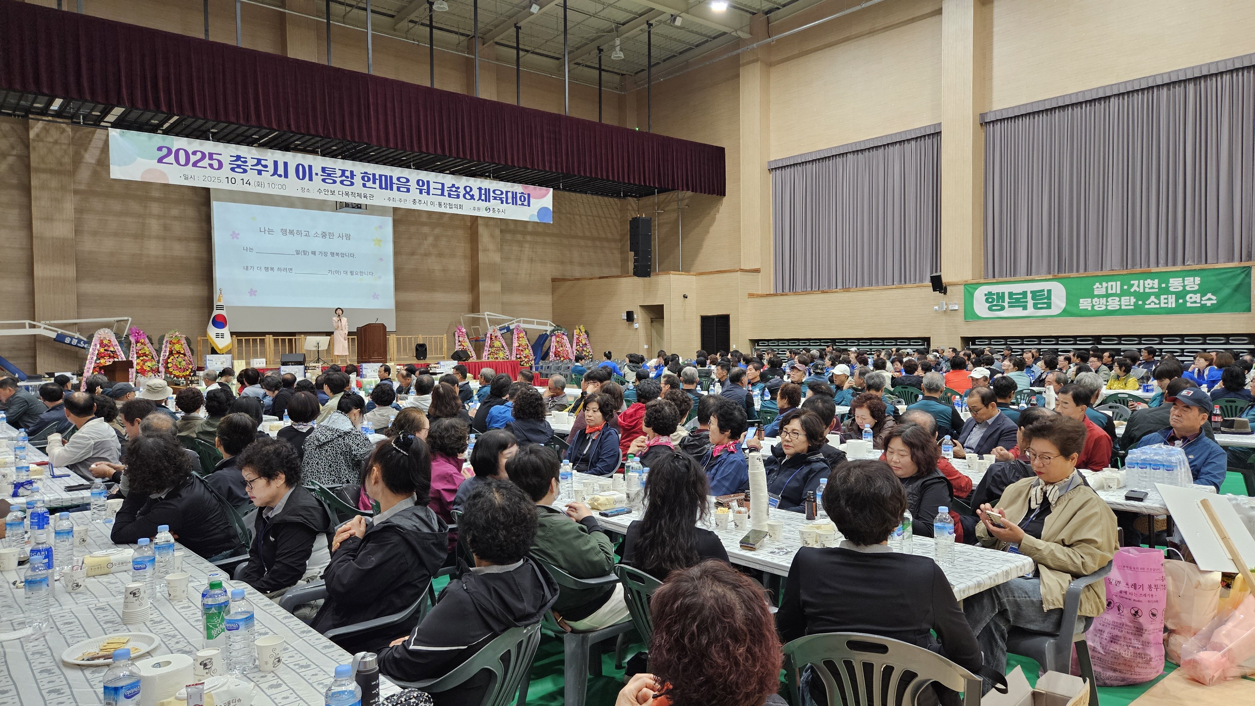 [충청뉴스큐] 충주시이통장협의회(회장 최정식)는 14일 수안보다목적체육관에서 ‘2025년 충주시 이통장 워크숍 및 체육대회’를 개최해 화합과 소통의 시간을 가졌다.