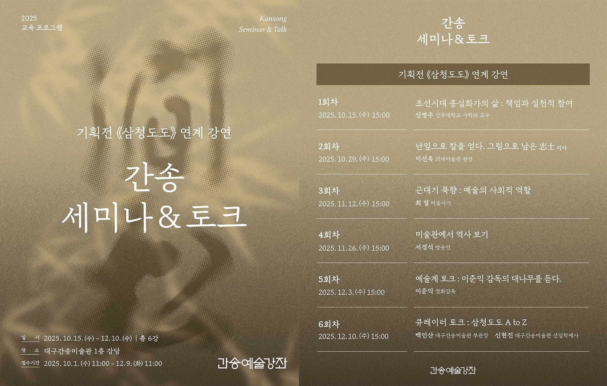 간송예술강좌는 대구간송미술관 누리집(홈페이지)을 통한 사전신청자 대상 무료 프로그램으로 진행된다.