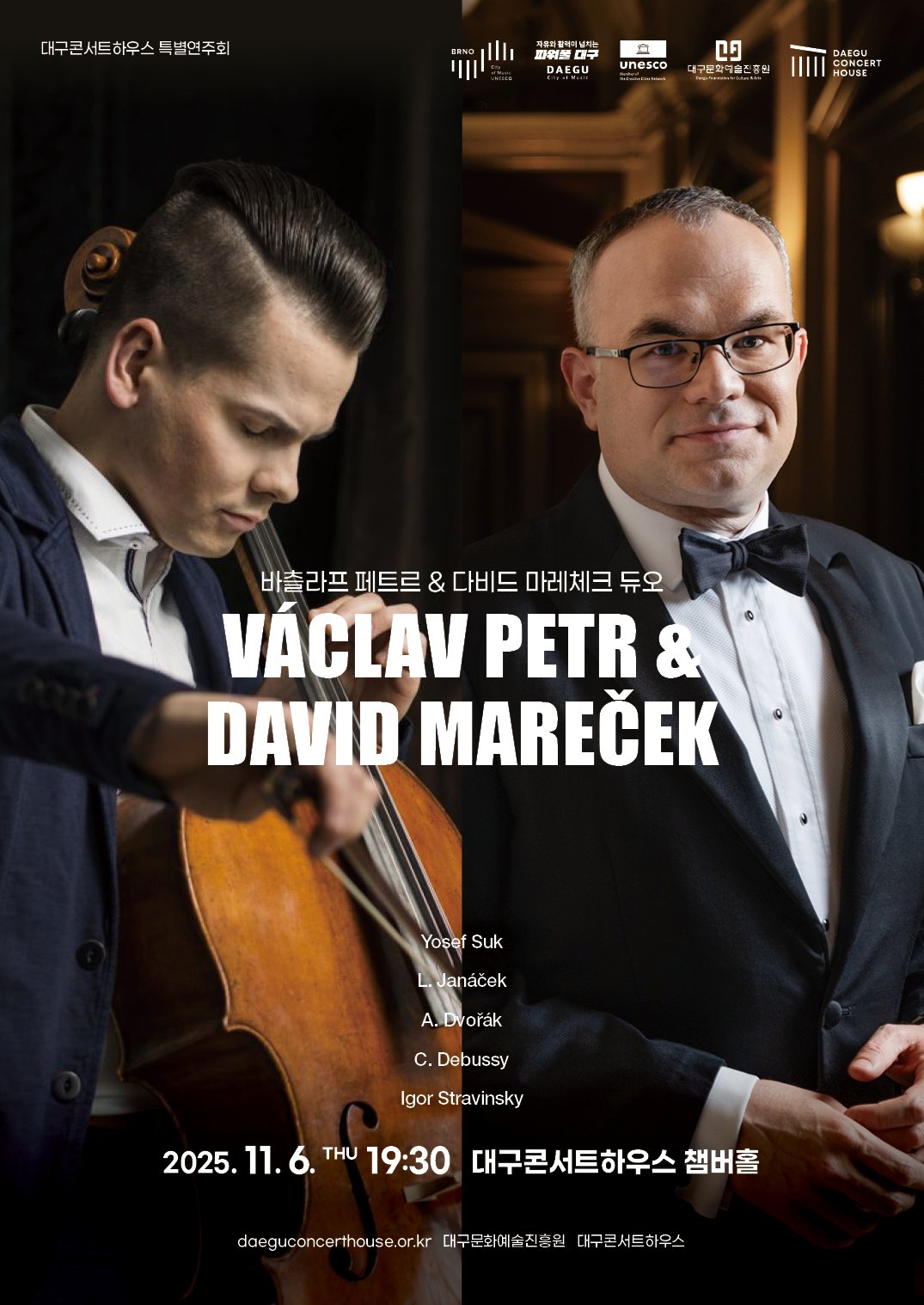 ‘바츨라프 페트르 & 다비드 마레체크 듀오’ 공연은 전석 1만원이며 대구콘서트하우스 누리집 및 놀티켓을 통해 예매가 가능하다.
