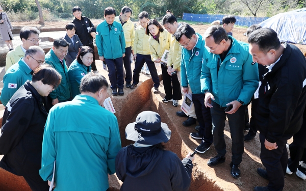 서산시의회 의원 전원이 참석한 현장방문 1일차에는 △부장리 고분군, △가야산 산림복지단지, △양대동 자원회수시설, △부석면 마룡리 폐기물 매립 의심 민원 현장, △지방도 649호 보강토옹벽 변위 현장을 순차적으로 방문했다.