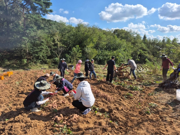 이날 일손돕기는 가을철 농번기를 맞아 잦은 비와 고령화로 고구마 수확이 늦어지고 있는 농가에 도움을 주고자 실시됐으며 고구마를 수확해 운반하는 작업을 도왔다.