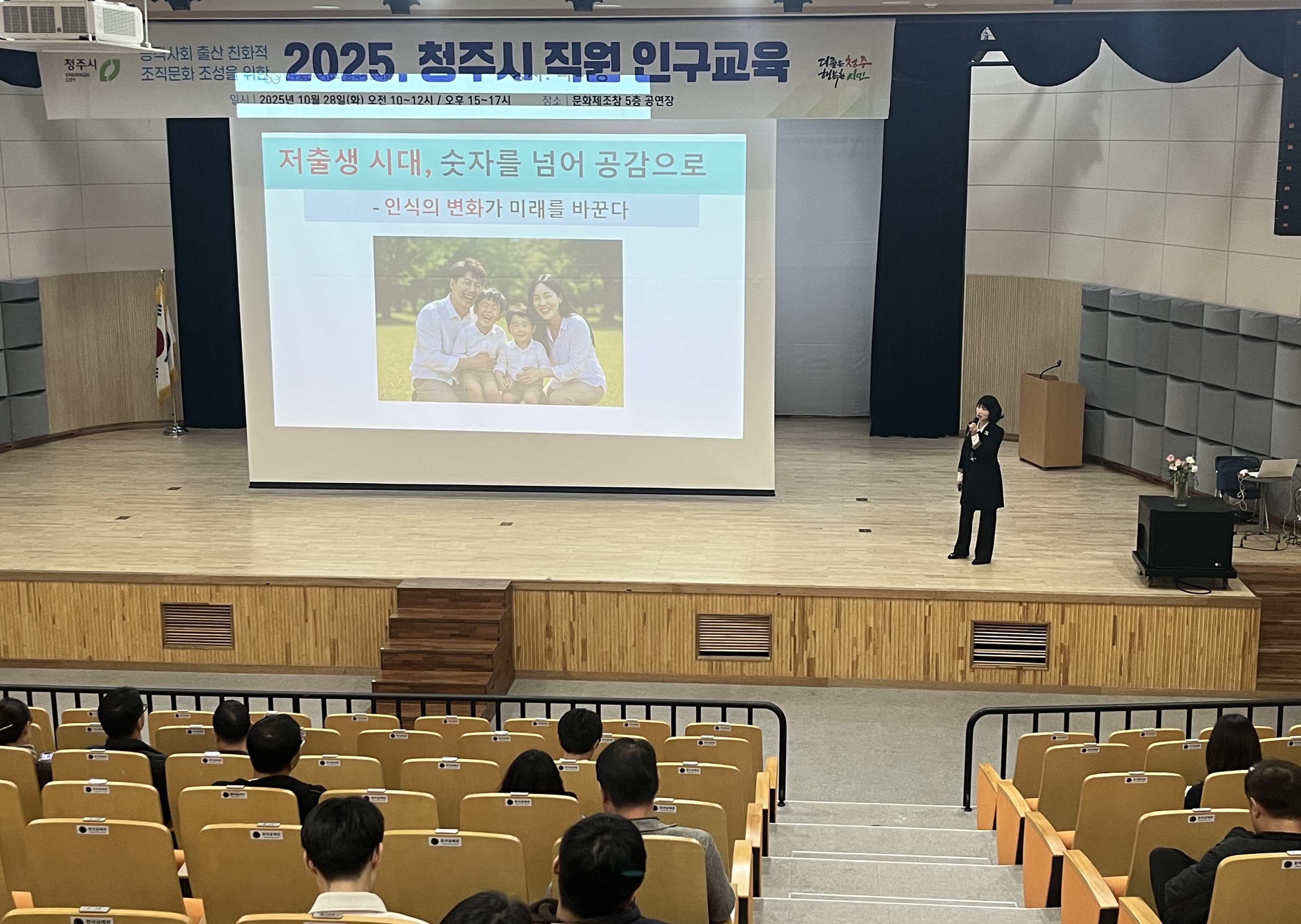 [충청뉴스큐] 청주시는 28일 문화제조창에서 시 산하 공직자 600명을 대상으로 인구변화 이해와 미래 대응을 위한 인구 교육을 실시했다.