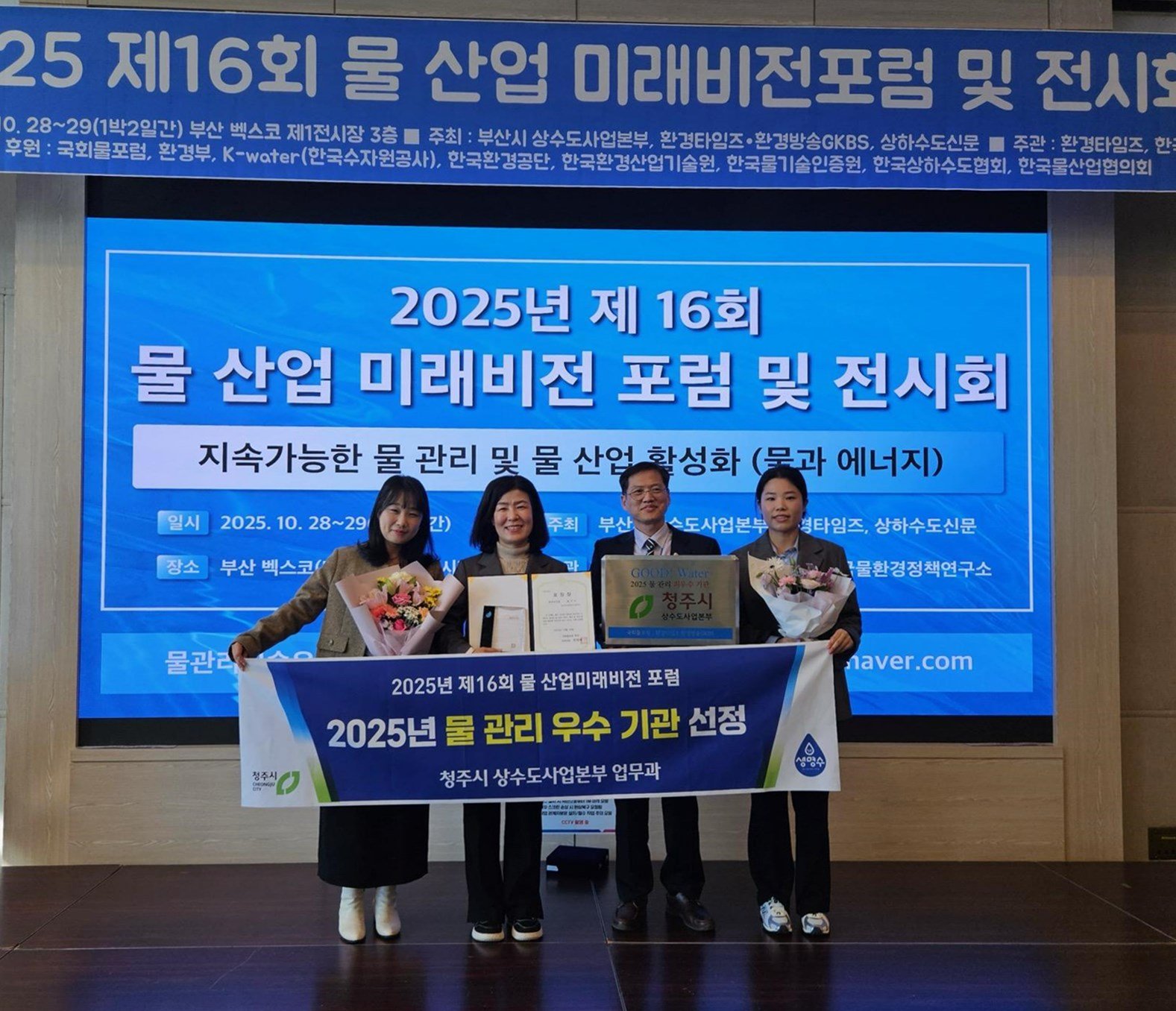 [충청뉴스큐] 청주시 상수도사업본부는 28일 부산 벡스코에서 개최된 ‘제16회 물 산업미래 비전 포럼’에서 ‘물 관리 우수기관’으로 선정돼 상을 받았다.