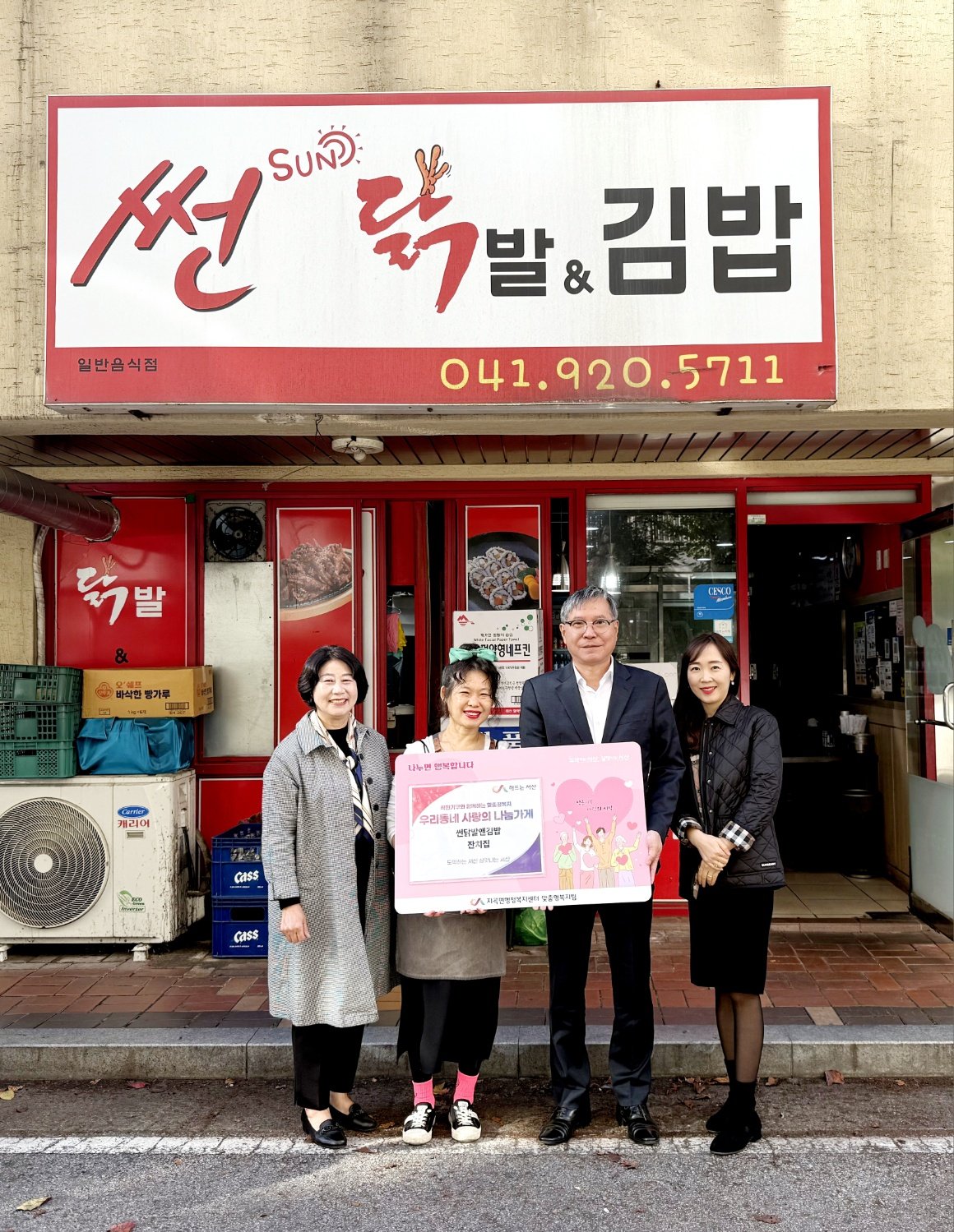 지곡면(면장 장욱순)은 10월 28일(화) 오전 10시, 관내 음식점 ‘썬닭발앤김밥’(대표 김선희)과 ‘잔치집’(대표 송미경)에서 “우리동네 사랑의 나눔가게” 3·4호점 기탁식을 개최했다고 밝혔다.
