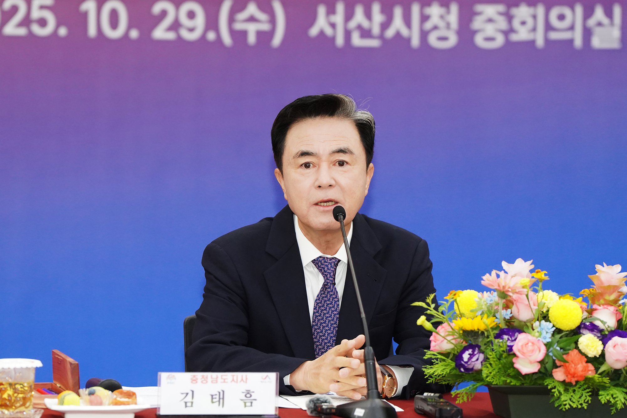 이날 시청 중회의실에서 진행된 간담회는 이완섭 서산시장, 김태흠 충남도지사, 언론인 등 50여명이 참석했다.