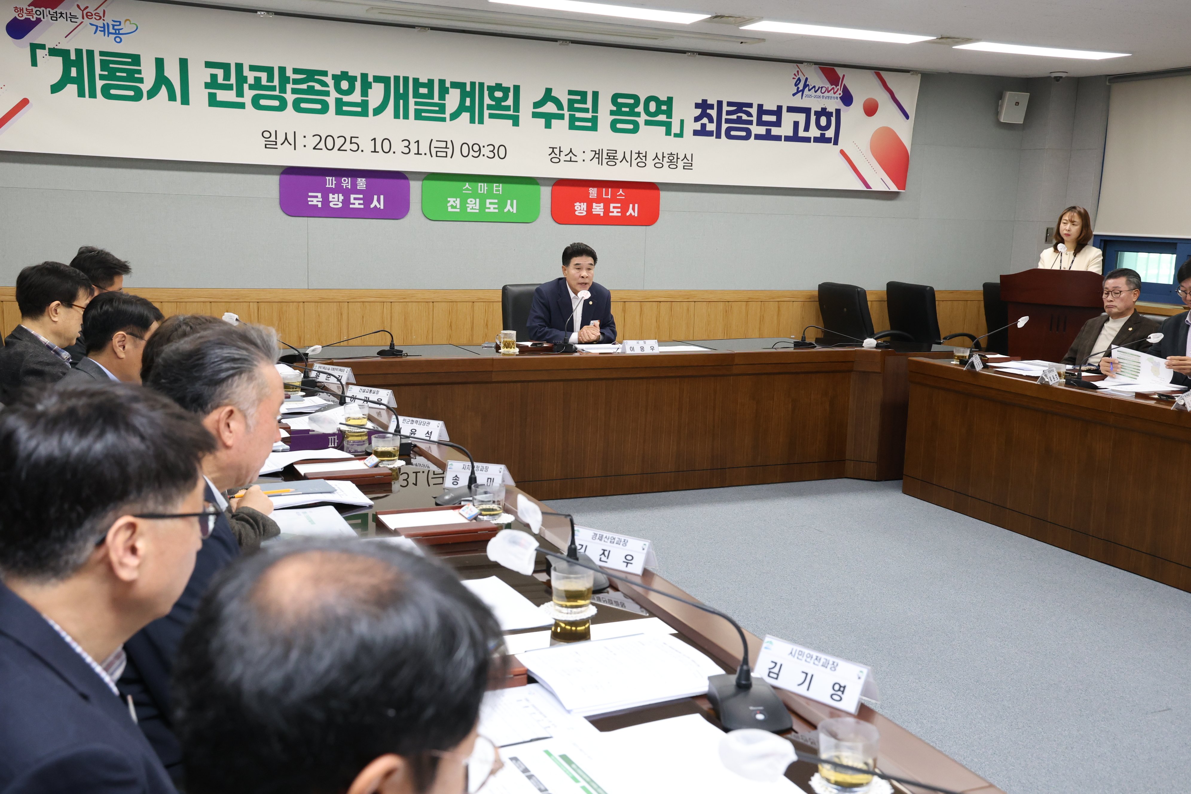 [충청뉴스큐] 계룡시(시장 이응우)는 지난 31일 시청 상황실에서 ‘계룡시 관광종합개발계획 수립 용역’최종보고회를 개최하고 지난 6개월간의 연구 성과와 향후 추진 전략을 공유했다.