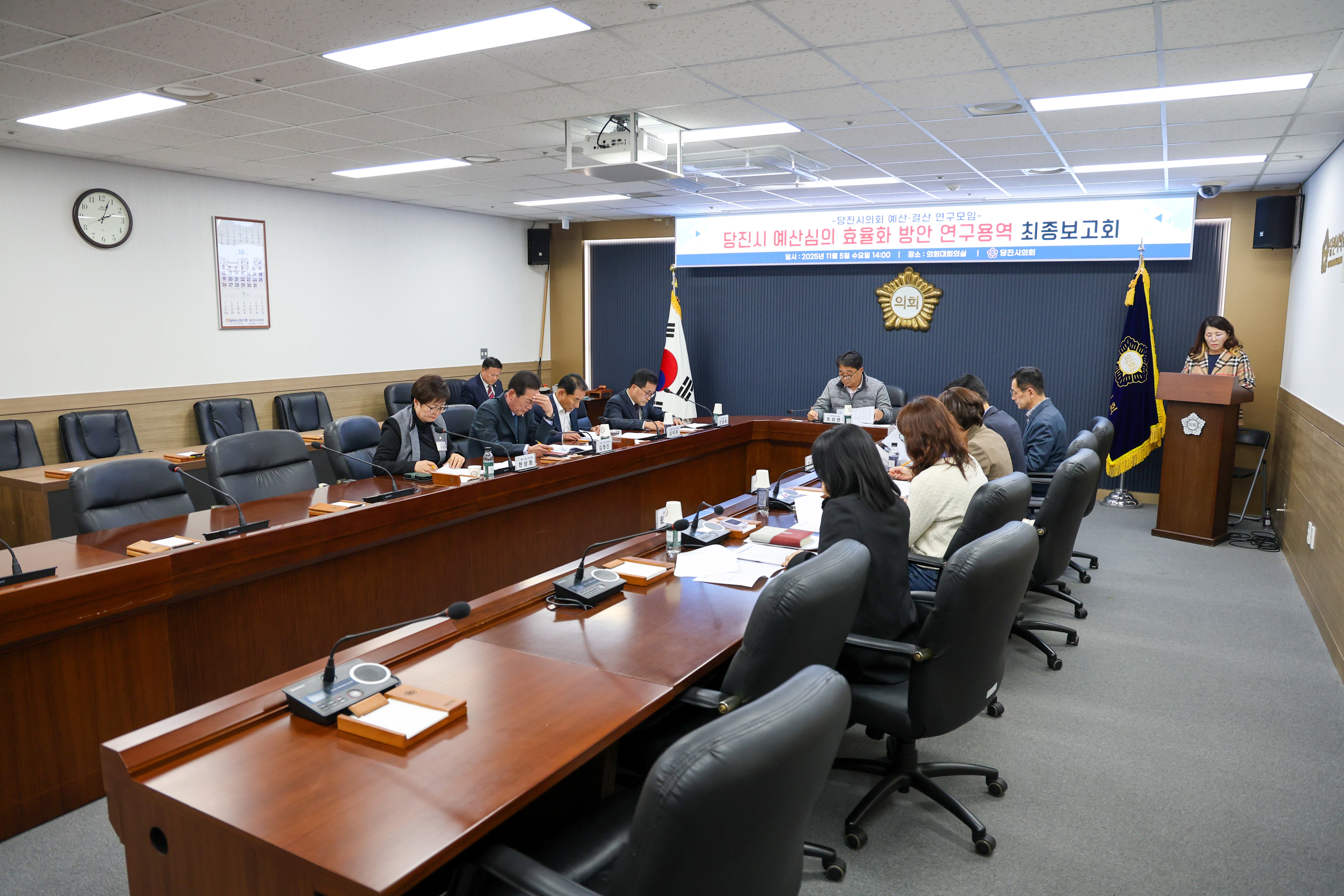 [충청뉴스큐] 당진시의회 예산 · 결산 연구모임이 11월 5일 의회 대회의실에서 ‘당진시 예산심의 효율화 방안 연구용역’최종보고회를 개최했다고 전했다.