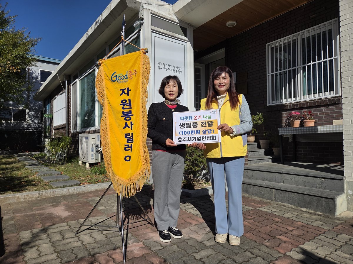 [충청뉴스큐] 충주시기업인협회는 10일 충주시자원봉사센터가 추진하는 자원봉사 릴레이 운동의 18번째 주자로 참여해 충주시여자중장기청소년쉼터에 100만원 상당의 생필품을 전달했다.