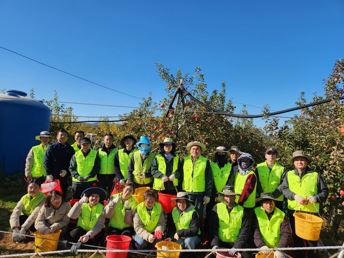 [충청뉴스큐] 예산군농업기술센터는 지난 10일 직원 30여명이 참여한 가운데 고덕면 용리의 한 사과 농가를 찾아 농촌일손돕기를 실시했다.