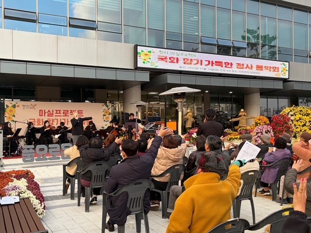 [충청뉴스큐] 서천군은 지난 18일 군청사 야외에서 ‘청사 마실 프로젝트’의 아홉 번째 프로그램인 국화 향기 가득한 청사 음악회를 성황리에 개최했다.