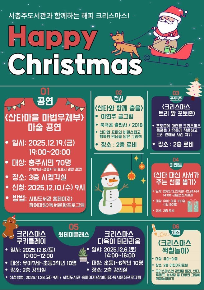[충청뉴스큐] 서충주도서관은 12월 한 달간 연말 맞이 크리스마스 특별 행사를 운영한다고 밝혔다.