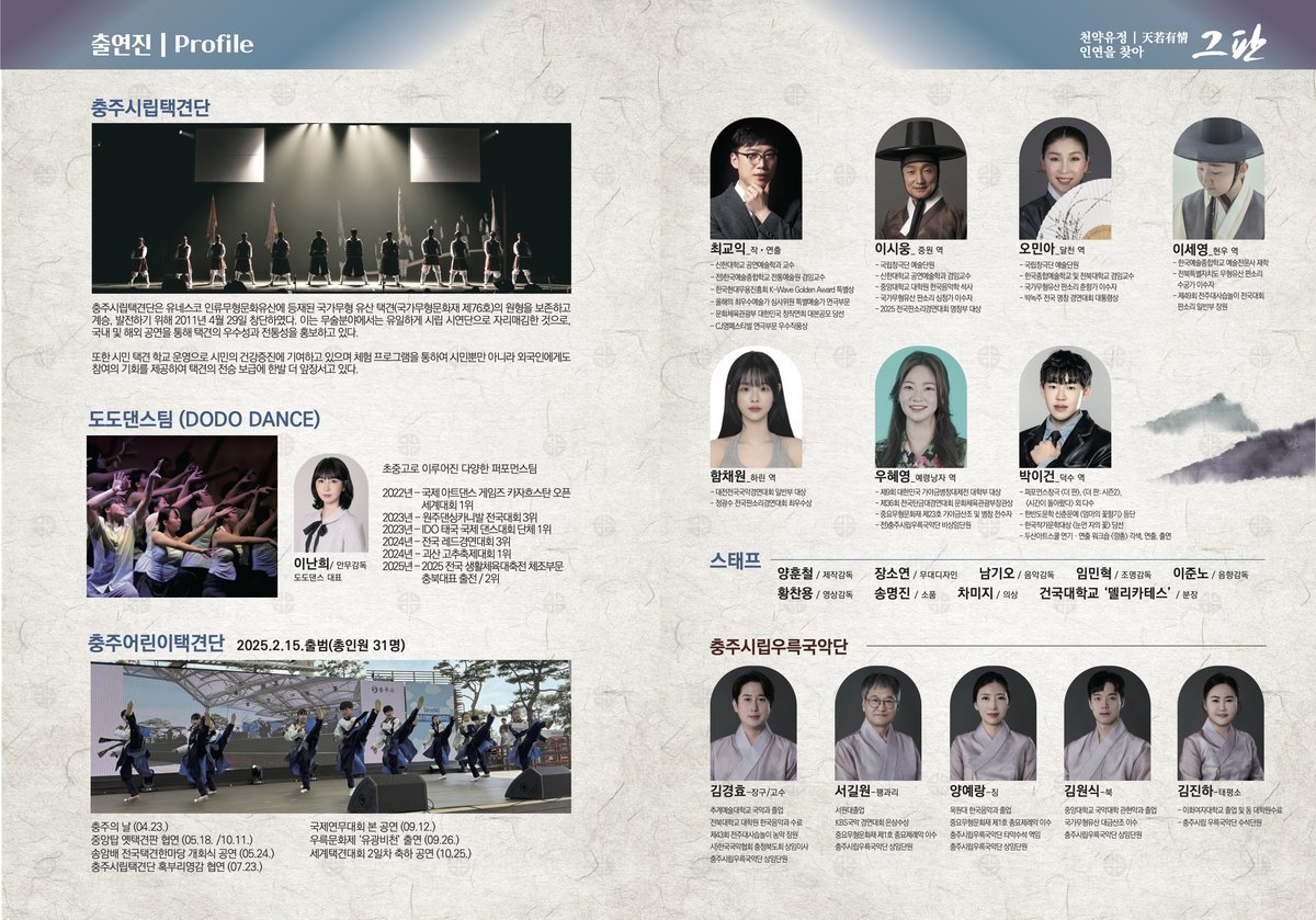 여기에 도도댄스와 충주어린이 택견단, 충주시립우륵국악단의 사물놀이팀이 참여해, 다양한 장르의 에너지를 더하며 무대는 더욱 풍성해진다.