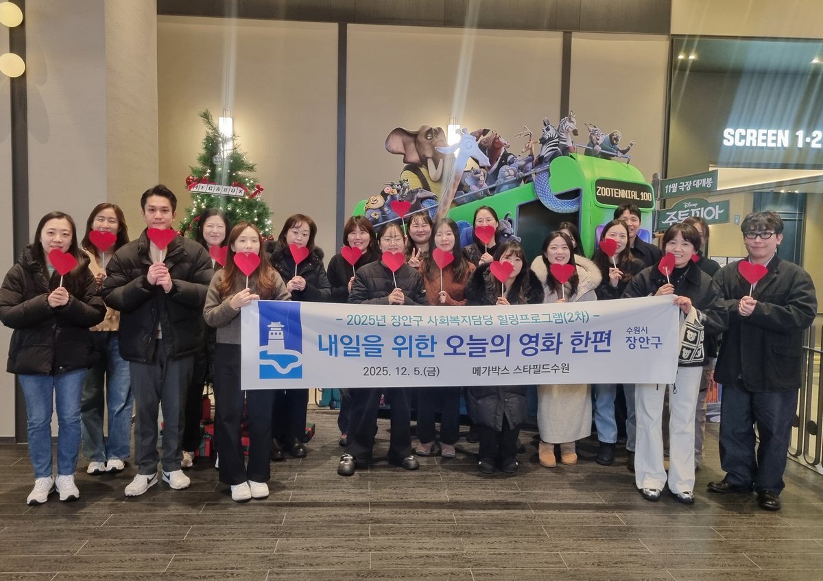 [충청뉴스큐] 수원시 장안구는 지난 5일, 메가박스 스타필드수원에서 사회복지담당 공무원 2 차 힐링프로그램 ‘내일을 위한 오늘의 영화 한편 ’을 진행했다고 밝혔다.