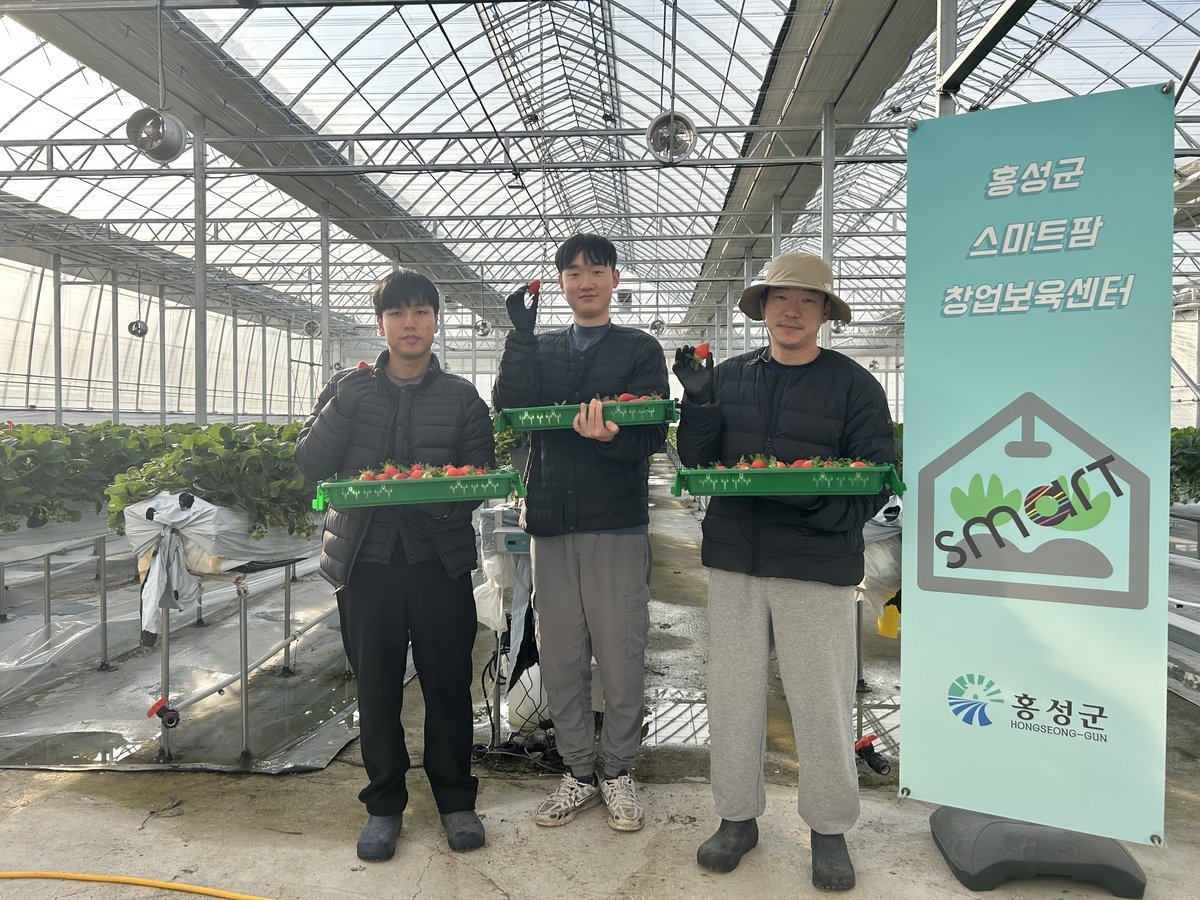 [충청뉴스큐] 충남 홍성군에서 운영하는 ‘스마트팜 사관학교’에서 청년농업인들이 재배한 딸기가 첫 수확 출하되며 본격적인 성과를 거두고 있다.