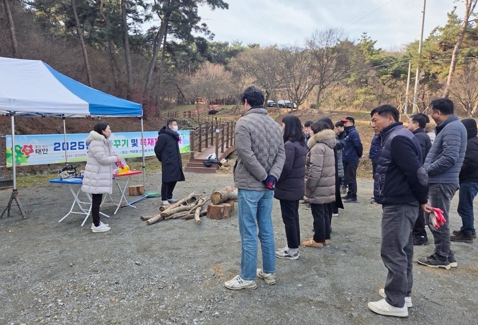 군은 지난 12일 태안읍 백화산 내 흥주사 일원에서 태안군 및 태안군산림조합 관계자와 지역 주민 등 20여 명이 참석한 가운데 ‘2025년 숲가꾸기 및 목재체험 행사’를 개최했다고 밝혔다.