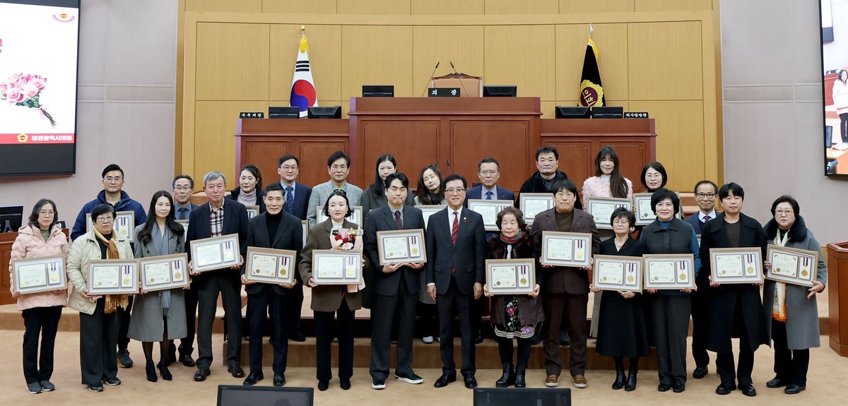 조원휘 대전시의회 의장은 “지역을 위해 보이지 않는 자리에서 헌신해 온 시민 여러분의 노력이 오늘의 대전을 만들어 왔다”며, “앞으로도 공동체 가치를 실천하는 시민들이 존중받고 격려받을 수 있도록 의회 차원의 역할을 이어가겠다”고 말했다.