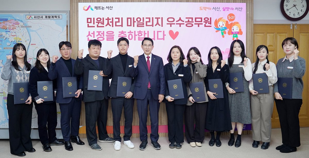 [충청뉴스큐] 충남 서산시는 지난 15일 2025년 하반기 민원처리 마일리지 우수공무원을 선정해 시상했다고 밝혔다.