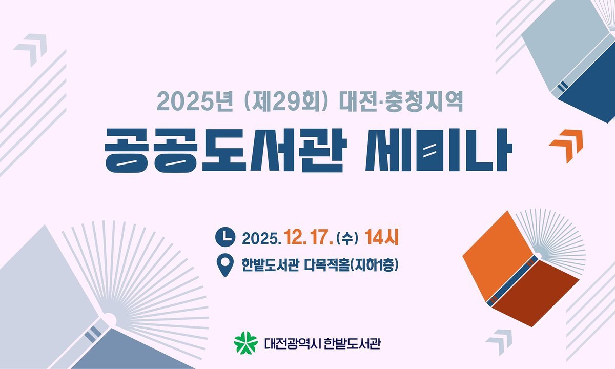 [충청뉴스큐] 한밭도서관은 17일 오후 2시, 한밭도서관 다목적홀에서 대전충청지역 공공도서관 사서 및 직원을 대상으로 ‘2025 대전․충청지역 공공도서관 세미나’를 개최한다.