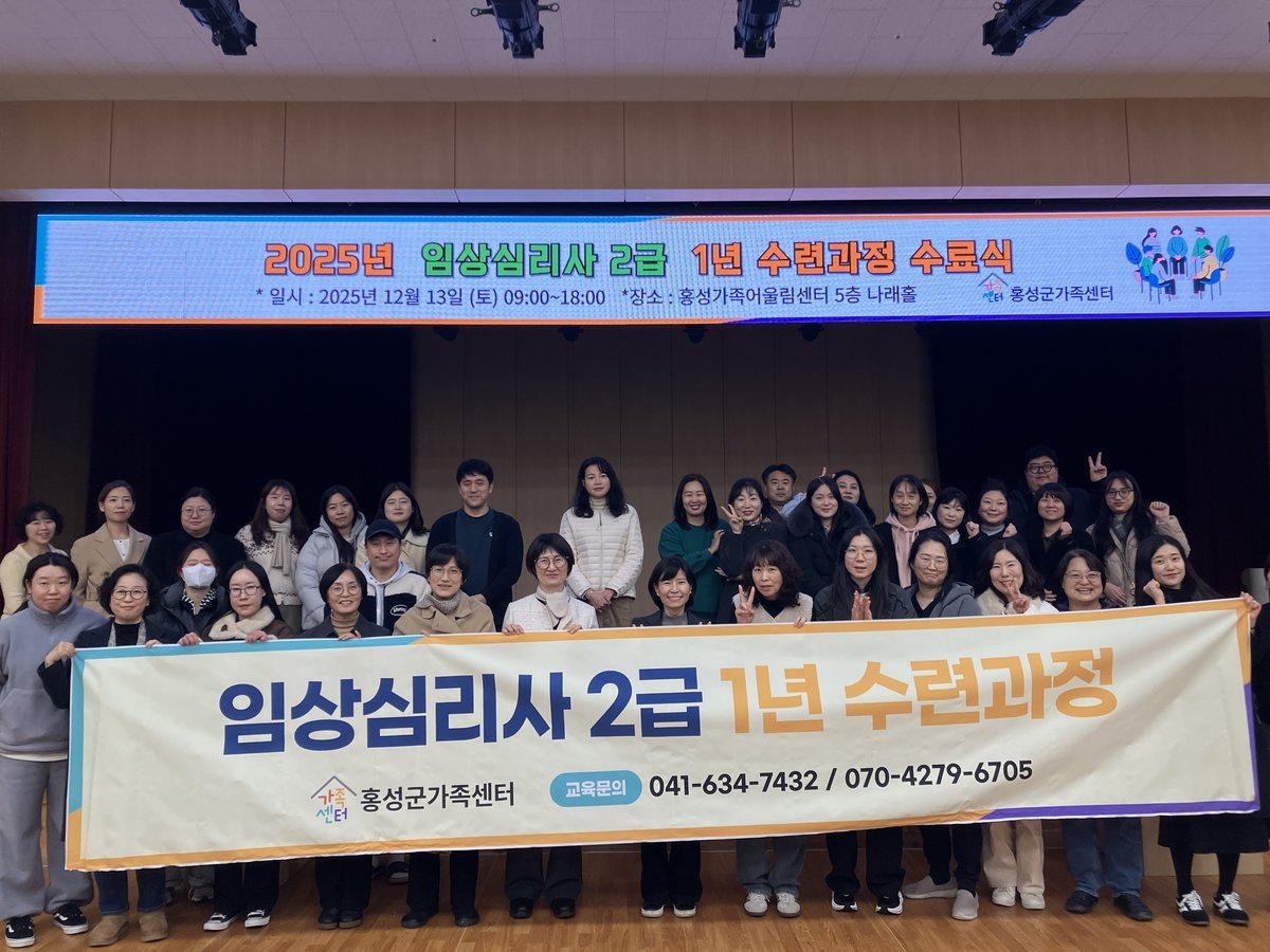 [충청뉴스큐] 홍성군은 지난 13일, 홍성군가족어울림센터 나래홀에서 2025년 아동 심리상담 전문가 양성 과정 수료식을 개최하고, 총 30명의 수료생에게 수료증을 전달했다.