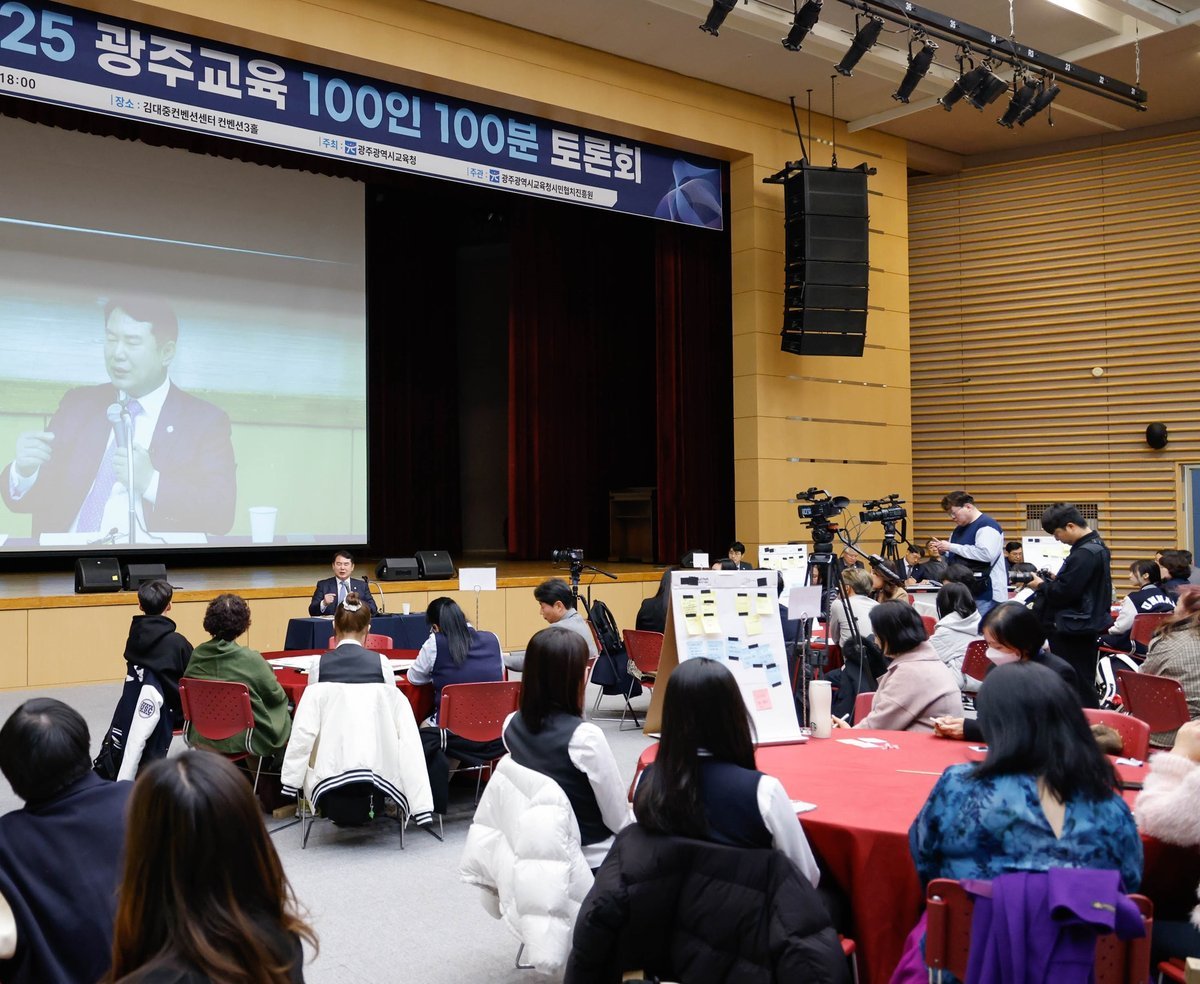 광주시교육청시민협치진흥원은 지난 16일 김대중컨벤션센터 컨벤션홀에서 학생, 학부모, 교직원, 시민 등 100여 명이 참여한 가운데 ‘2025 광주교육 100인 100분 토론회’를 개최했다.