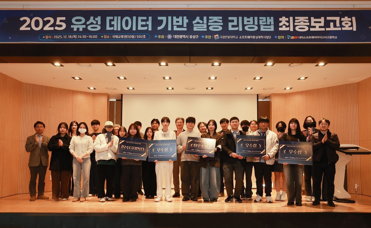 보고회에서는 추진 사업의 주요 성과와 향후 활용 방향을 공유했으며, 국립한밭대학교·대덕소프트웨어마이스터고·유클리드 등 협력 기관 관계자와 참여 학생 개발자가 참여했다.