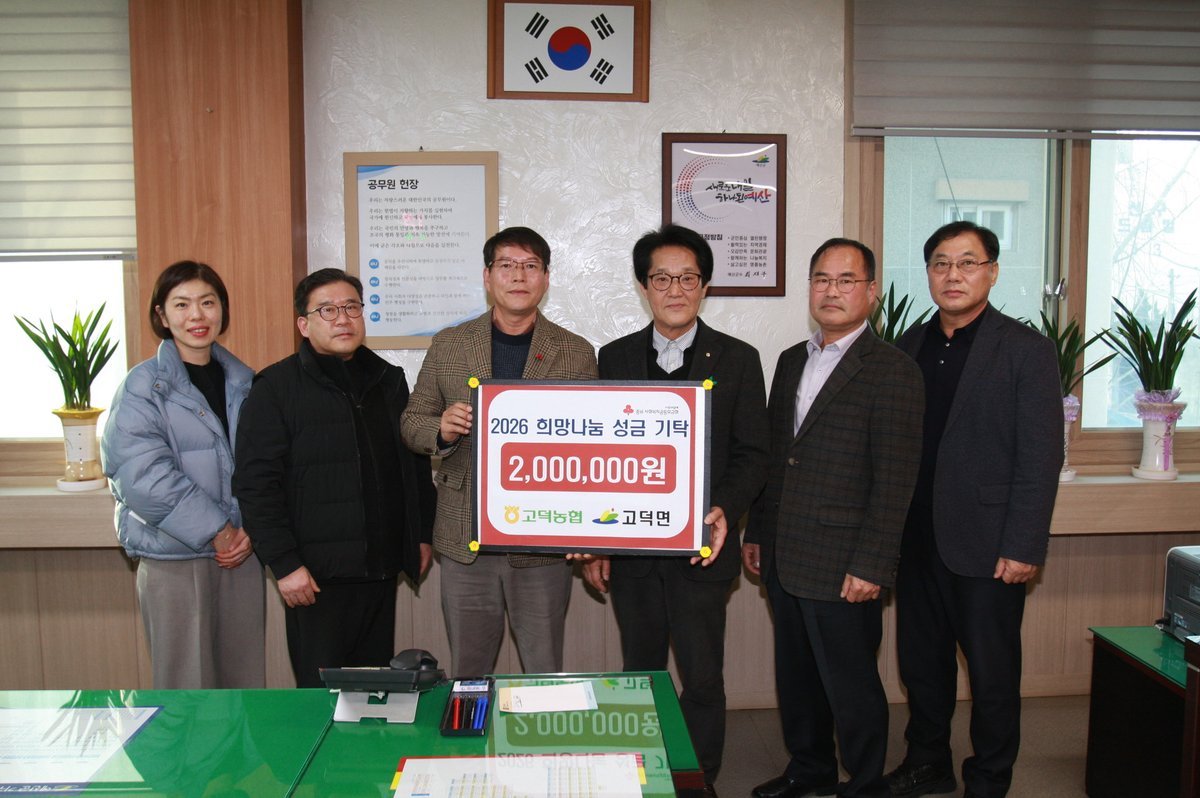 장태복 고덕면장은 “매년 지역사회를 위해 따뜻한 나눔을 실천해 주는 고덕농협에 깊이 감사드린다”며 “기탁된 성금은 사회복지공동모금회를 통해 관내 취약계층의 복지 증진과 긴급 지원에 소중히 사용하겠다”고 말했다.