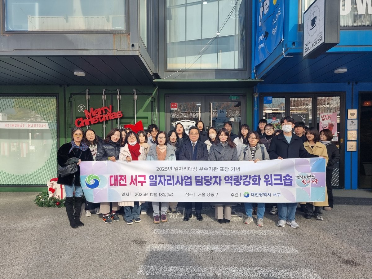 [충청뉴스큐] 대전 서구는 ‘2025년 일자리대상’표창 수상을 기념해, 서울 성동구 일원에서 일자리 사업 담당자 역량 강화 워크숍을 개최했다고 22일 전했다.