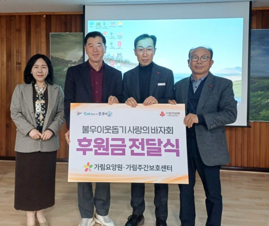 이번 성금은 가림요양원과 가림노인주간보호센터 임직원들이 지난 12일 자발적으로 참여한 사랑 나눔 바자회를 통해 마련한 것으로, 가림요양원은 지난해에 이어 올해에도 성금 기탁을 이어가며 지속적인 사회공헌 활동을 실천하고 있다.