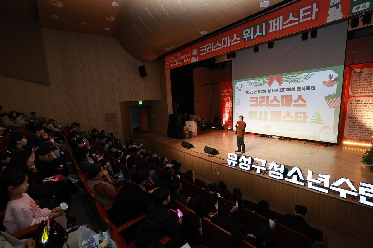 [충청뉴스큐] 대전 유성구는 지난 20일 유성구청소년수련관에서 ‘2025년 제2차 꿈다해봄 청소년 행복 축제-크리스마스 위시 페스타’를 개최했다.