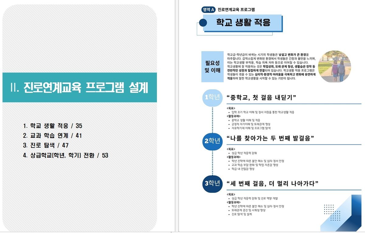 아울러 지역 및 학교 특성을 반영한 다양한 운영 사례를 소개해 학생들이 학년 간 또는 학교급 전환 과정에서 겪는 어려움을 완화하고 학생의 학습과 성장이 지속될 수 있도록 돕는다.