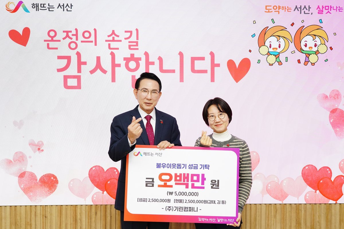 시는 이날 시청 시장실에서 이완섭 서산시장, 송주현 ㈜기린컴퍼니 대표가 참석한 가운데 기탁식을 개최했다.