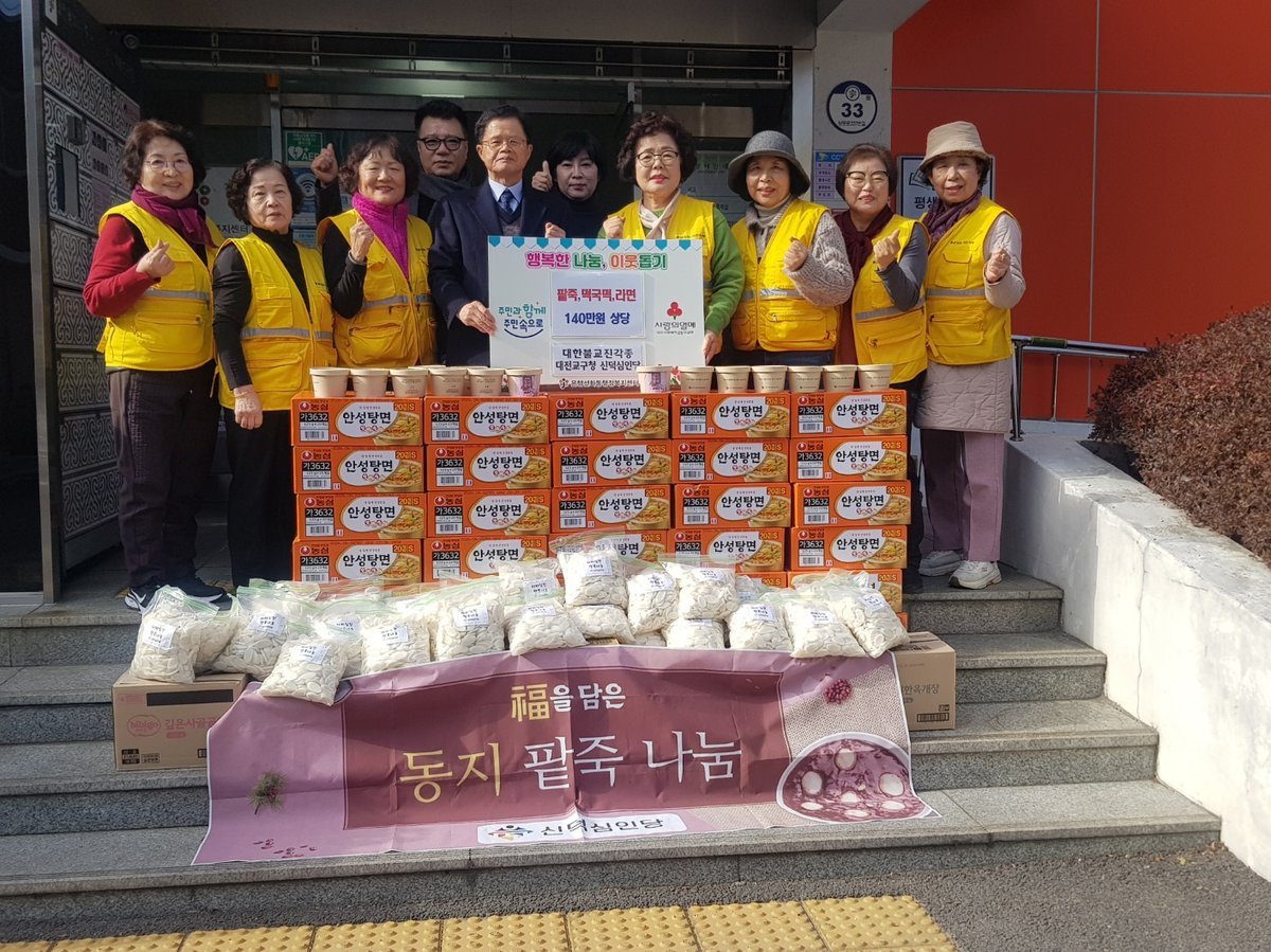 [충청뉴스큐] 대전 중구 은행선화동은 대한불교진각종 대전교구청 신덕심인당에서 팥죽 50개, 떡국떡 50개, 라면 40박스를 기탁했다고 28일 밝혔다.