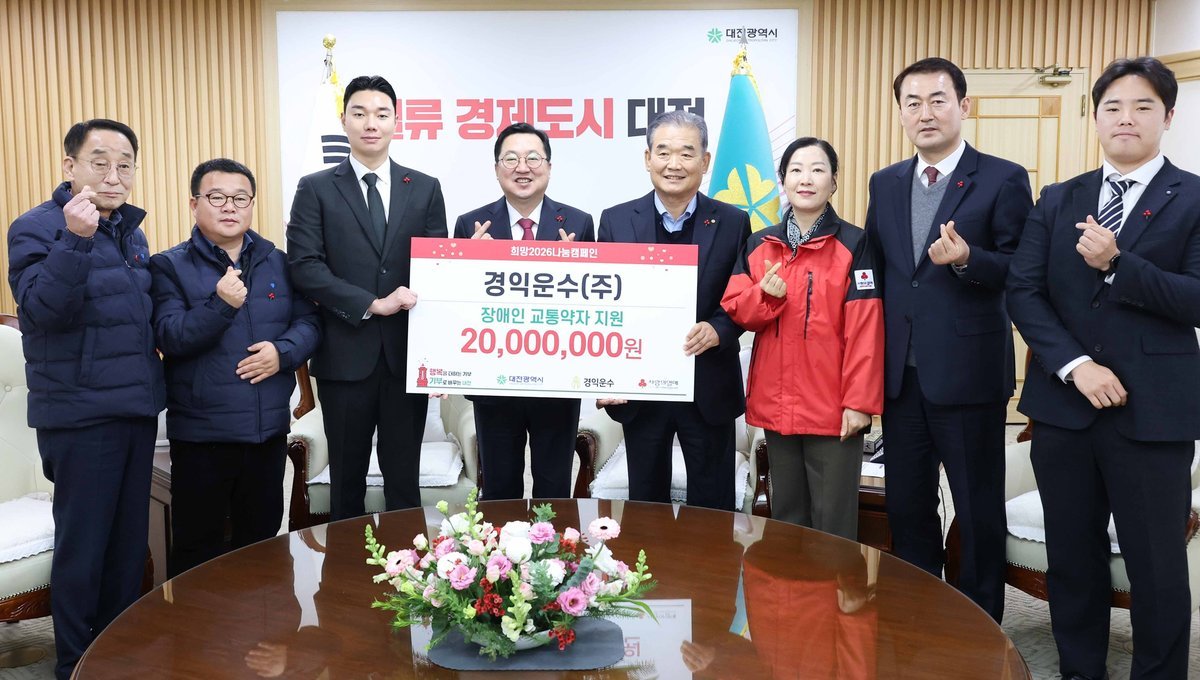 이장우 대전시장은 “시민의 발이 되어온 경익운수가 나눔으로도 지역사회에 온기를 전해주어 감사드린다”며 “기탁된 성금은 도움이 필요한 이웃에게 소중히 전달하겠다”고 말했다.
