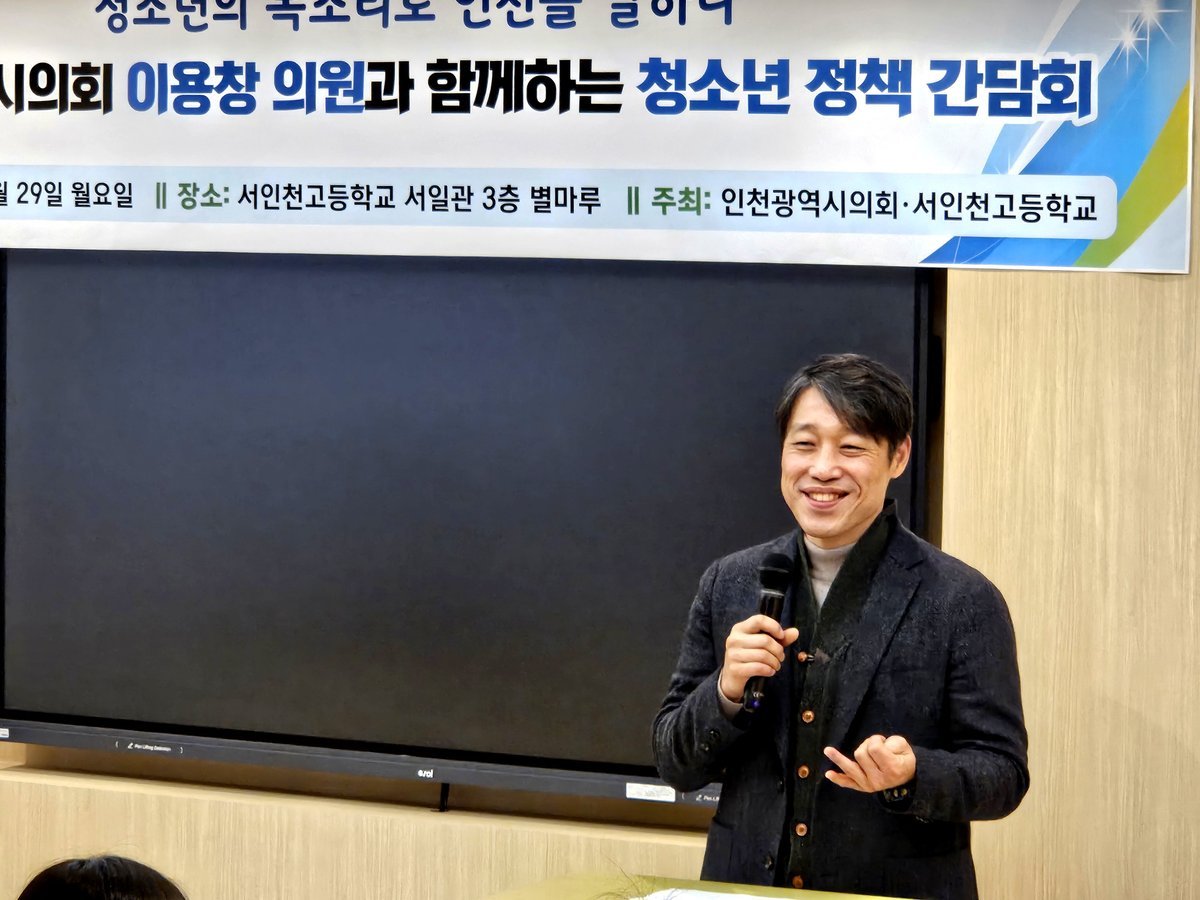 이번 간담회는 최근 ‘2025 인천광역시 청소년정책공로대상’을 수상하고 청소년활동진흥센터 위원으로 활동하며 청소년 권익 증진에 앞장서 온 이용창 위원장의 의정 철학을 바탕으로 마련됐다.