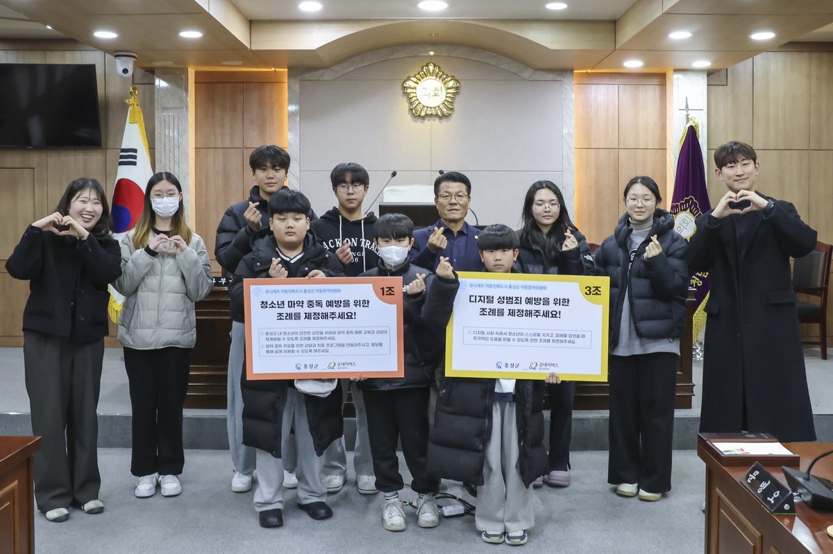 [충청뉴스큐] 제5기 홍성군 아동참여위원회가 지난 29일, 홍성군 의회를 방문해 △청소년 마약 중독 예방 관련 조례 제정 △디지털 성범죄 예방을 위한 조례 제정을 제안해 눈길을 끌고 있다.