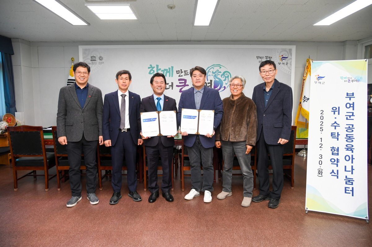 [충청뉴스큐] 부여군은 지난 30일 부여군 공동육아나눔터 운영을 위하여 백강문화사회적협동조합과 위·수탁 업무 협약을 체결했다.
