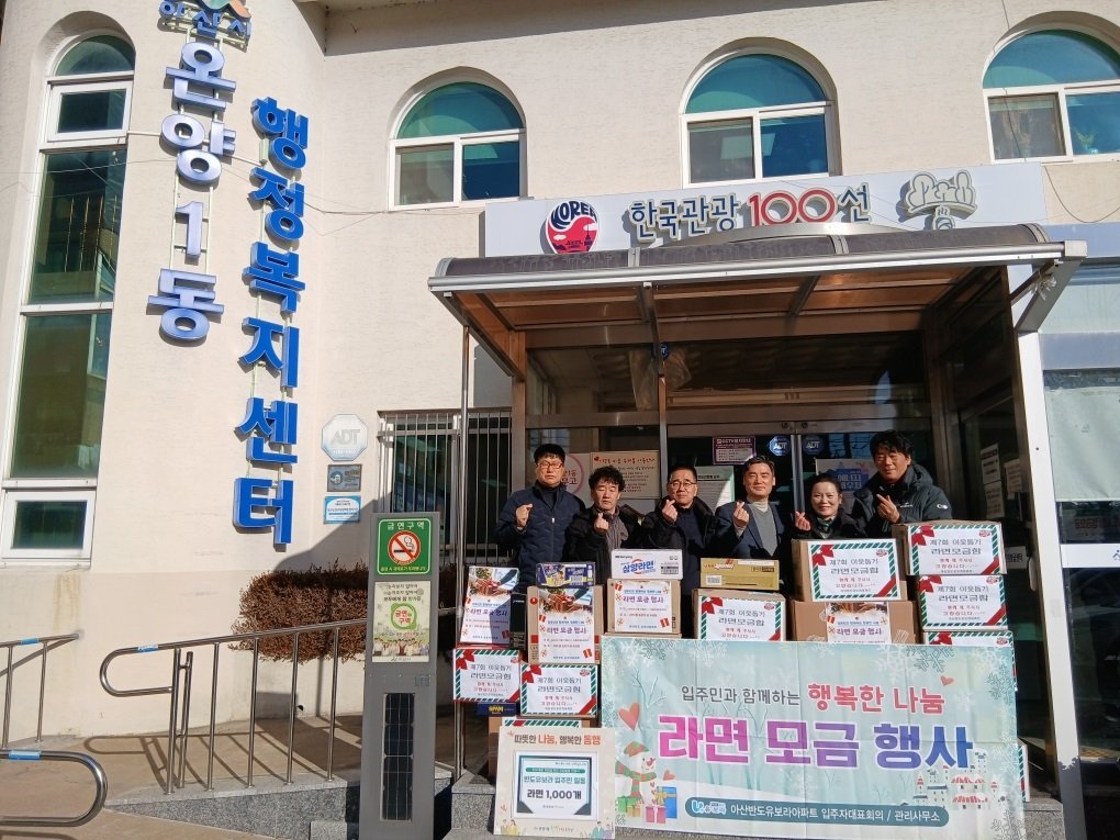 심현성 온양1동장은 “입주민 여러분의 따뜻한 나눔에 깊이 감사드린다”며 “기탁해 주신 라면은 꼭 필요한 이웃들에게 소중히 전달하겠다”고 말했다.