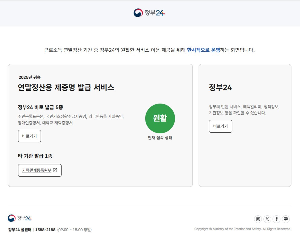또한, 많은 국민들이 정부24 연말정산 제증명 서비스를 이용할 수 있도록 SNS 채널을 통해서도 홍보할 예정이다.