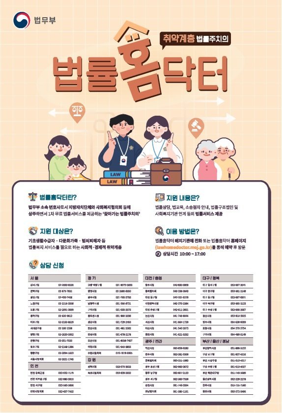 ‘법률홈닥터’는 사회적․경제적 취약계층에게 1차 무료 법률서비스를 제공하는 사업이다.