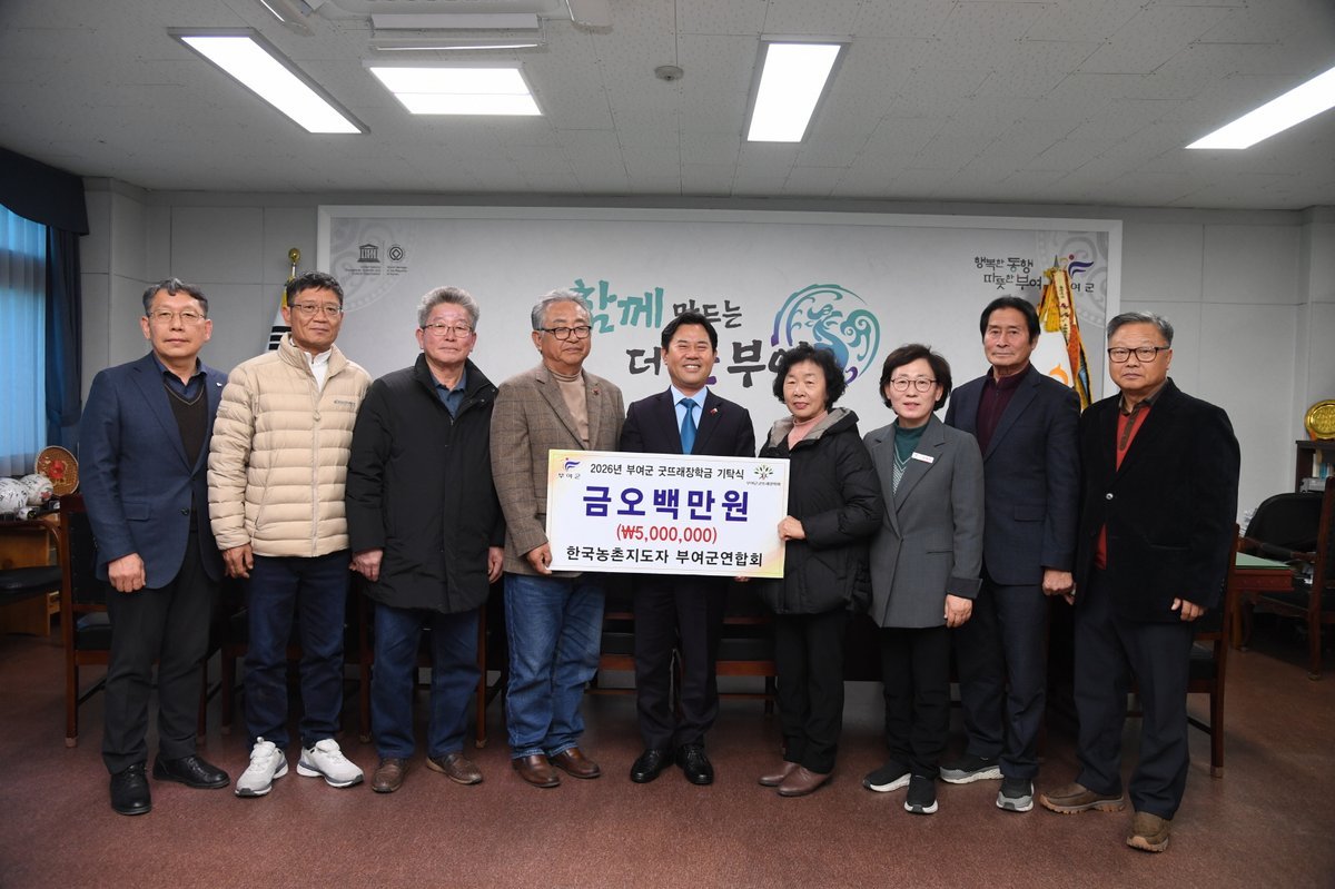 [충청뉴스큐] 부여군농촌지도자회는 부여군청을 방문하여 인재 육성을 위한 장학금 5백만 원을 부여군굿뜨래장학회에 기탁했다고 13일 밝혔다.