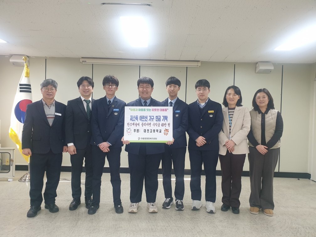 [충청뉴스큐] 대전 중구 대흥동은 13일 자율형공립고 대전고등학교에서 지난 1월 2일 교내에서 열린 '한모예술제'행사 부스 중 하나로 학생 주도의 플리마켓을 운영하고, 수익금 전액을 지역사회에 기부했다고 밝혔다.