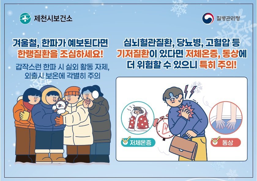 [충청뉴스큐] 제천시보건소가 겨울철 한파로 인한 건강 피해를 예방하기 위해 독거 어르신, 만성질환자, 거동 불편자 등 건강 취약계층을 대상으로 집중 건강관리를 추진한다.