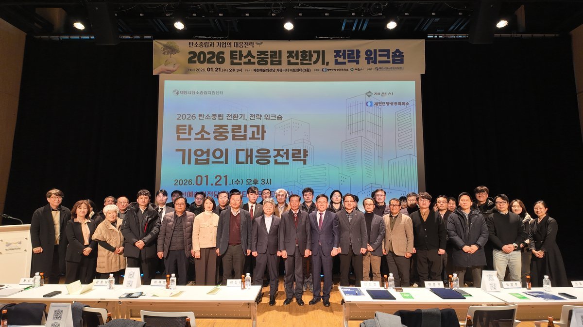 [충청뉴스큐] 제천시 탄소중립지원센터는 제천단양상공회의소와 함께 지난 21일 제천예술의전당 커뮤니티아트센터에서 ‘탄소중립과 기업의 대응전략 워크숍’을 개최했다.