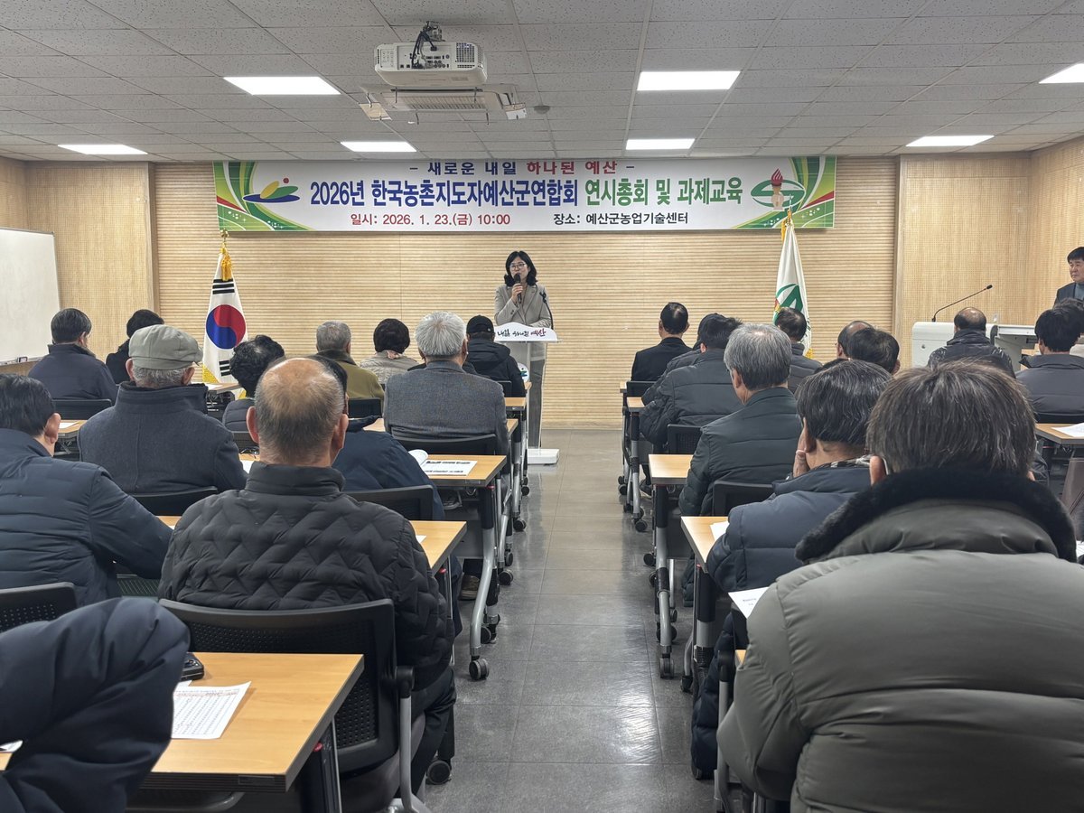 [충청뉴스큐] 예산군농업기술센터는 지난 23일 농업기술센터 세미나실에서 각 읍면 농촌지도자 임원 등 60여명이 참석한 가운데 2026년 한국농촌지도자예산군연합회 연시총회 및 과제교육을 개최했다고 밝혔다.